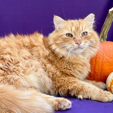 Pierogi is one of the newer additions to our sanctuary. He showed up at my workplace in early 2025 on one of the coldest days of the year, sleeping in a cat shelter outside our building. Our board member, Nicole, was able to trap him, get him neutered, and foster him before he came to us. He has quickly become one of our most affectionate kitties and has also become the preferred cuddle buddy of the group. The other cats absolutely adore him and once he warms up to you, he loves chin scratches.